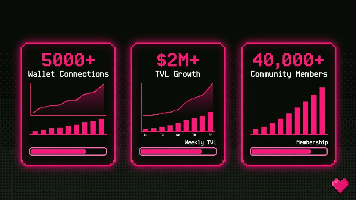 Our blockchain marketing campaigns consistently deliver measurable outcomes. We have driven 5,000+ verified wallet connections for MPC wallet projects, generated $2M+ in TVL growth for DeFi protocols through targeted campaigns, and built communities from zero to 40,000+ active members within 90 days.