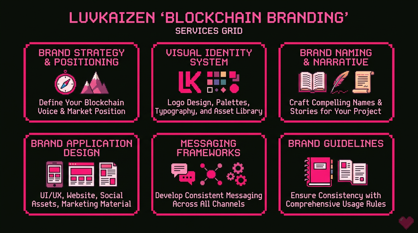In an industry plagued by scams and copycat projects, your brand is your first line of defense and your most powerful growth tool. LuvKaizen is a blockchain branding agency that creates distinctive, trust-building brand identities for crypto projects — from early-stage startups to established protocols looking to rebrand for the next phase of growth.